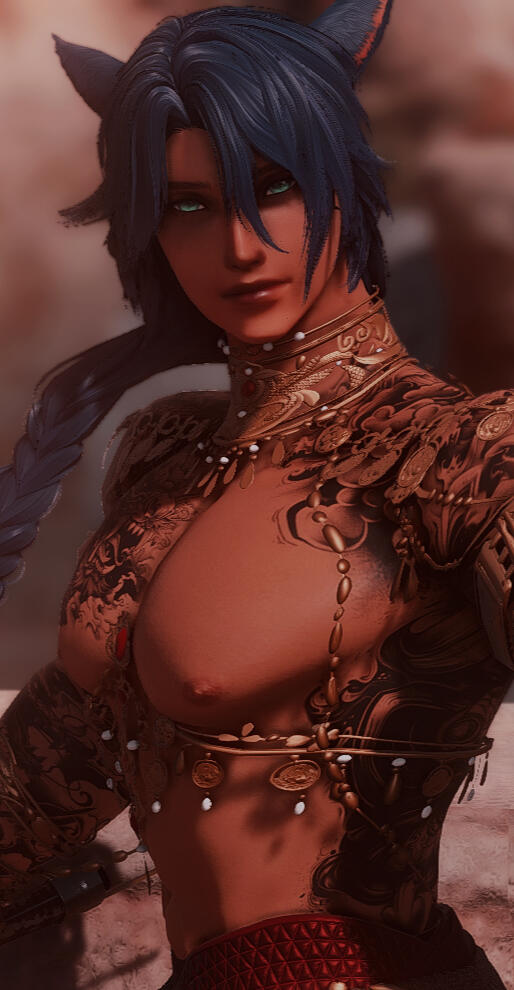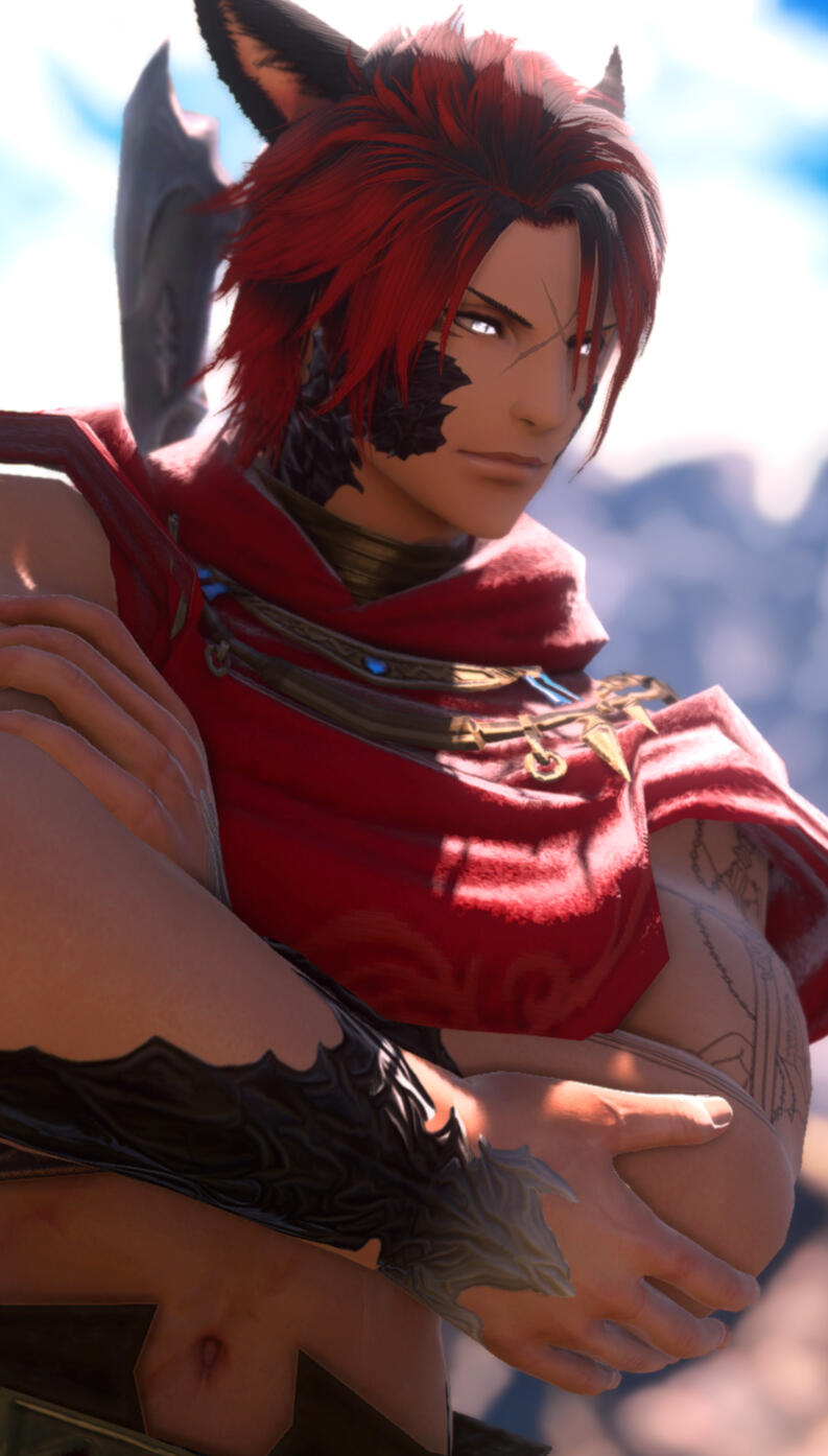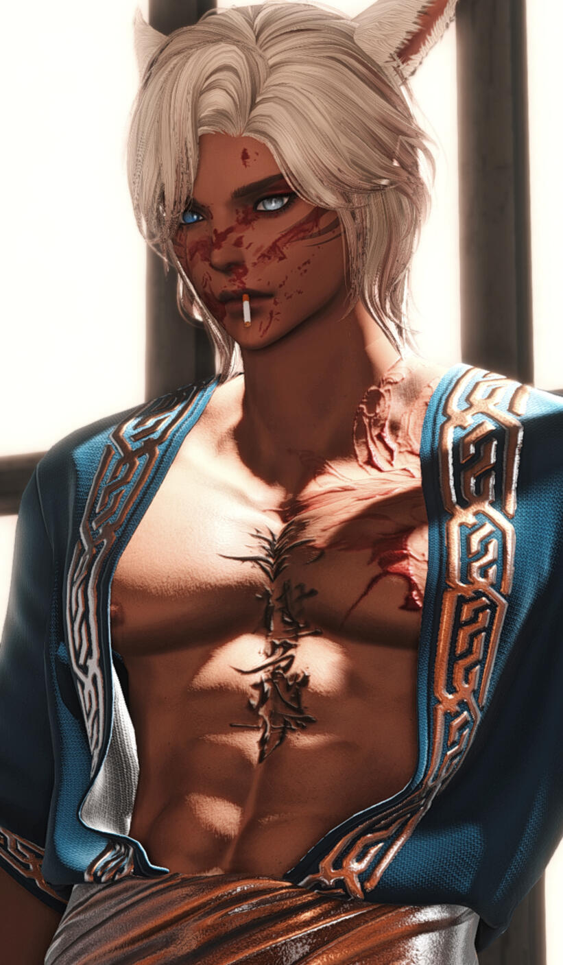 ㅤbiographyㅤㅤBorn in the Azim Steppe to a Xaela mother, and Seeker father Kazuma quickly learned that to survive meant adapting. The dangers the Steppe presented caused his parents to travel to the Black Shroud in search of a new home. Within the forest they could create a quiet, private home for them, away from the judging gazes of other for their mixed children. For a time they lived in harmony, his father a hunter, and his mother once a respected fighter in the Dotharl, feared in the Nadaam. Until Odin appeared to them one night.The primal attacked, and the twins' parents desperately tried to fight back. In the end Odin was defeated, at the cost of his father's life, and his mother critically injured. The sounds of battle attracted many a beast, eager to pick at the leftovers. Their mother, too weak to protect her children heard Zantetsuken speak to her, offering her power. With nothing left, his mother grabbed the sword, blessing her two sons with Echoes with her last bit of will before fully becoming Odin.That set the tone of Kazuma's life, him and Jinn were rescued by a retired Dragoon, who took them in. From that point on Kazu was determined to one day face Odin, and allow his mother's body to rest. For years he pushed his body to it's breaking point and further. Even joining the Scions did little to quench his desire for power. Until the end of ARR where he finally put a permanent end to Odin, and buried his mother alongside his father.Yet now in current times he has relaxed a bit. He has seen it all and wants to live out his days by his loved ones and friends. Yet that slumbering beast is always ready to rear it's fangs once more.