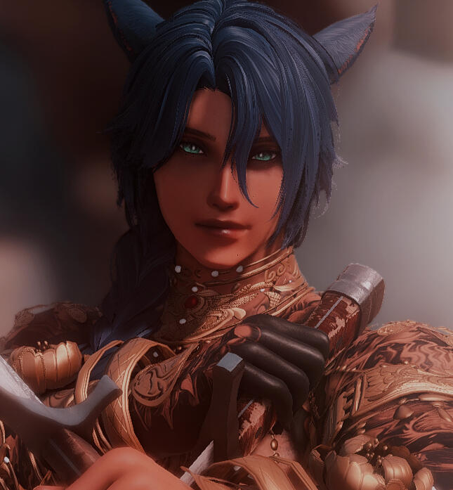 ㅤbiographyㅤㅤM'iago was orphaned as a result of the Garlean invasion of Ala Mhigo. His parents were swayed by the passionate words of Curtis Hext to dethrone the Mad King. Yet the Garlean invasion swiftly cut down them down and left M'iago without a family or hope. With nothing left, M'iago joined the group fleeing his homeland, seeking some shelter to away from all they had lost. Despite this, M'iago never let his light burn out. Through their endless trek he continued to rouse the people with song and dance every night. His energy was infectious, leaving the others with hope. It seemed as long as he could smile, the refugees would never give up.But, after only finding solace within the outskirts of Thanalan, something had changed with M'iago. He disappeared for a couple of days, and when he returned he was withdrawn, keeping to himself and staring up at the sky for hours on end. M'iago had been speaking about a friend for weeks on end previously, someone he cared deeply about. Many thought he may have lost said friend, which caused the other refugees to give him space, waiting for him to open up to them. This continued until one day, a group of Amal'jaa raided the camp.They fought off most, but a couple slipped into their caves, charging towards the young and elderly. When the refugees rushed in after them, they found the Amal'jaa dead, with young M'iago ontop of one, violently bashing it in the head over and over with a large rock. From that point on, M'iago recognized his talent for combat and became a gladiator, making a living and even a Champion. All his earnings given to the refugees, though they lamented how it felt M'iago sacrificed his innocence for them.M'iago played a character for all, to appeal to the masses, and none can tell what was the real him until post-Endwalker. Where the truth of what, or who M'iago really was came to the surface.