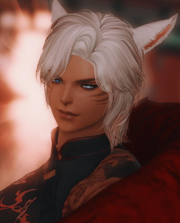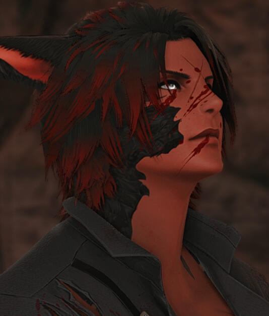 ㅤbiographyㅤㅤJinnzo was always the gentle one of the twins. He was more content with a book in his hands than a weapon. Even after losing his parents, Kazuma was happy to let him just enjoy and learn for his life. It was a peaceful life, until the twins were just young teens. When Kazuma was off on another hunt, their cabin was raided by the Coeurlclaw. Even in his old age, Évrard, their adoptive father, should have been able to handle the common bandits. But he was distracted, hiding Jinnzo away under the floorboards of the cabin. The Coeurlclaw caught the Dragoon from behind and he was mortally wounded right in front of the Miqo'ra.Jinn didn't dare make a sound, forced to stare at the corpse of their adoptive father for what felt like hours. The cabin began to fill with smoke, the bastards had set fire to it. Finally Kazuma arrived, discovering the carnage and just barely rescuing his brother from smoke inhalation. As Kazuma learned the truth, something snapped in him. The unbreakable wall he seemed to Jinn began to crack. All because Jinn forced him to shoulder everything, because Jinn was weak.The two went their separate ways after that, Kazuma gave Jinn all his earnings from hunting to start a new life. And Jinn did just that, traveling, fighting, stealing, and crawling his way to survive. He was determined to never be helpless ever again. Leading to Jinn creating his own gang in the Kugane underground, one that he would use to the fullest to help Kazu and the WoL starting in Stormblood after Kazuma was put in a coma after a fight with Zenos. After everything he had suffered, Jinn lived by one rule, to get his pound of flesh for any that wronged him or his loved ones.